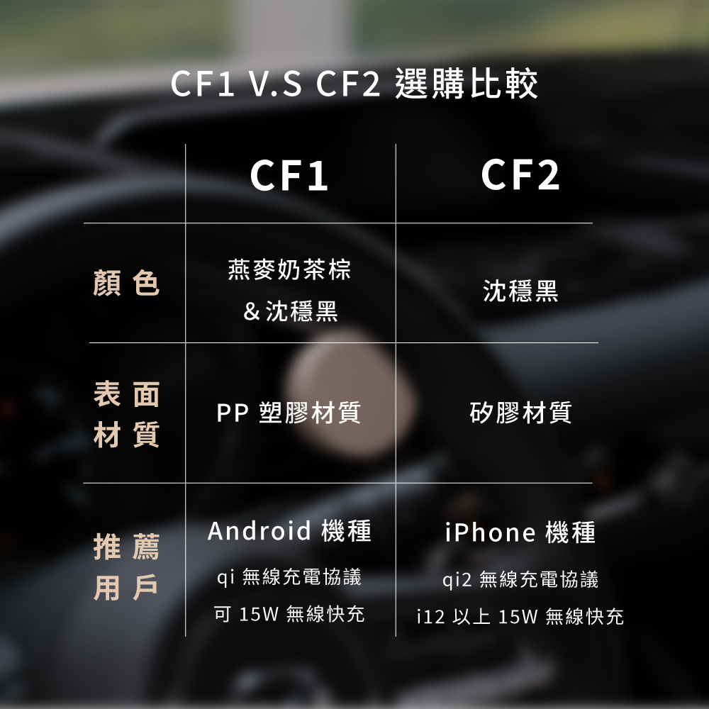 - CF2 僅支援 Android 7.5W 無線充電,建議選購 CF1