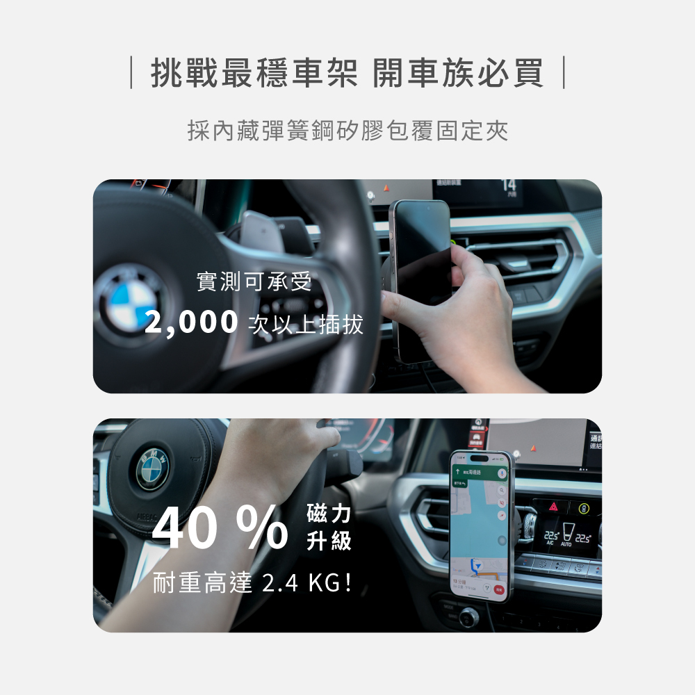 ✔︎ 磁力 40% 升級,實測過彎山路穩固牢靠