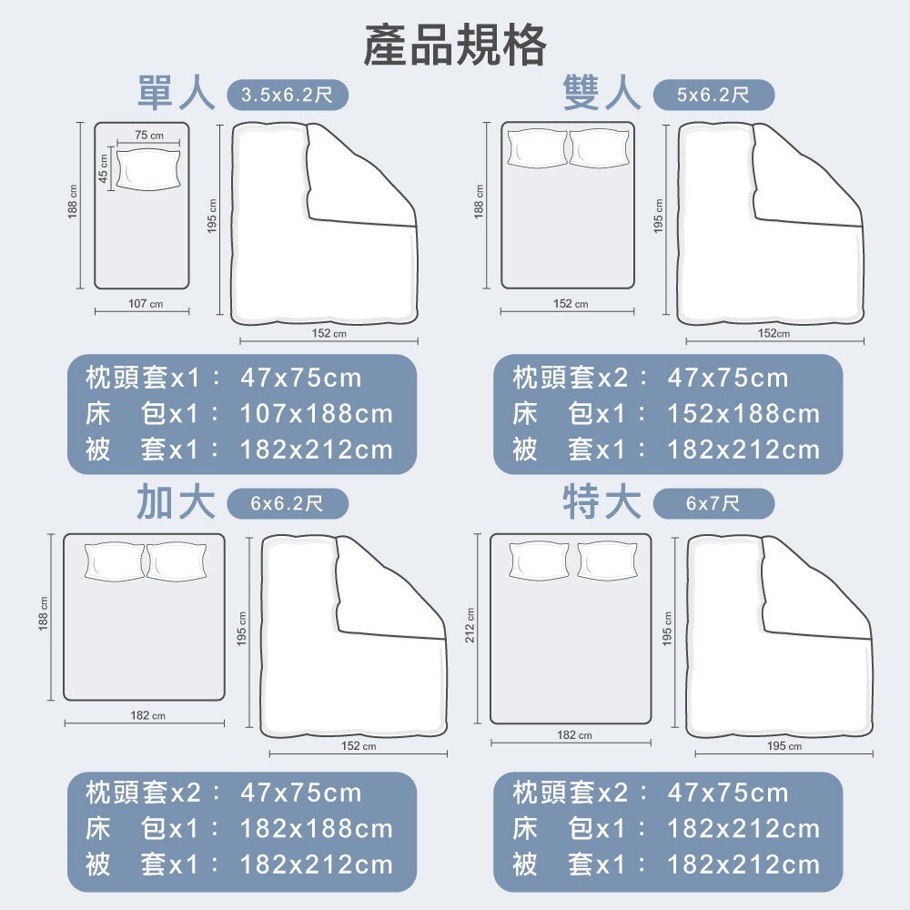 · 床包 ×1|3.5×6.2 尺(107×188±2cm)