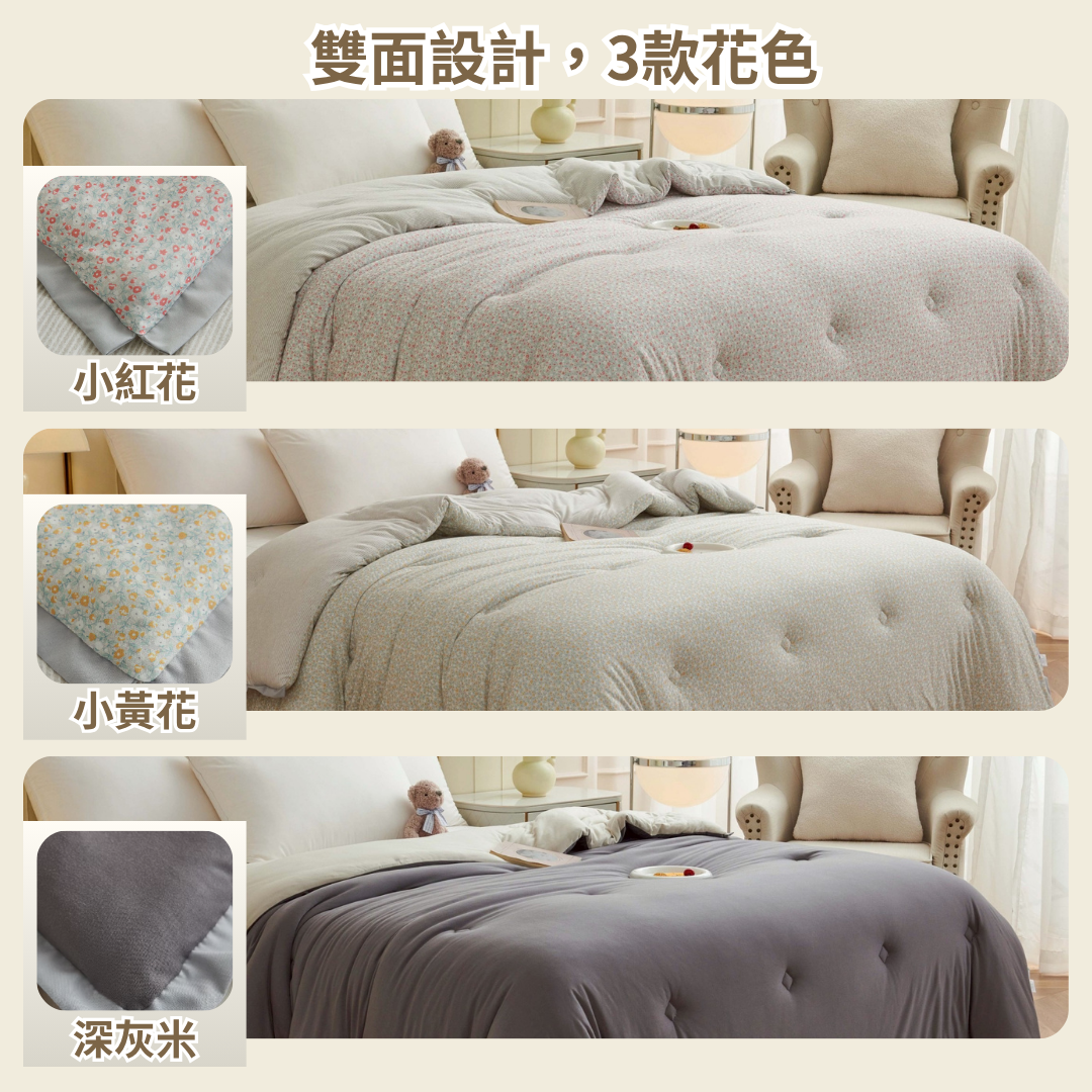 這款被子可直接水洗,免去傳統被套的麻煩。清洗方便,省時又衛生
